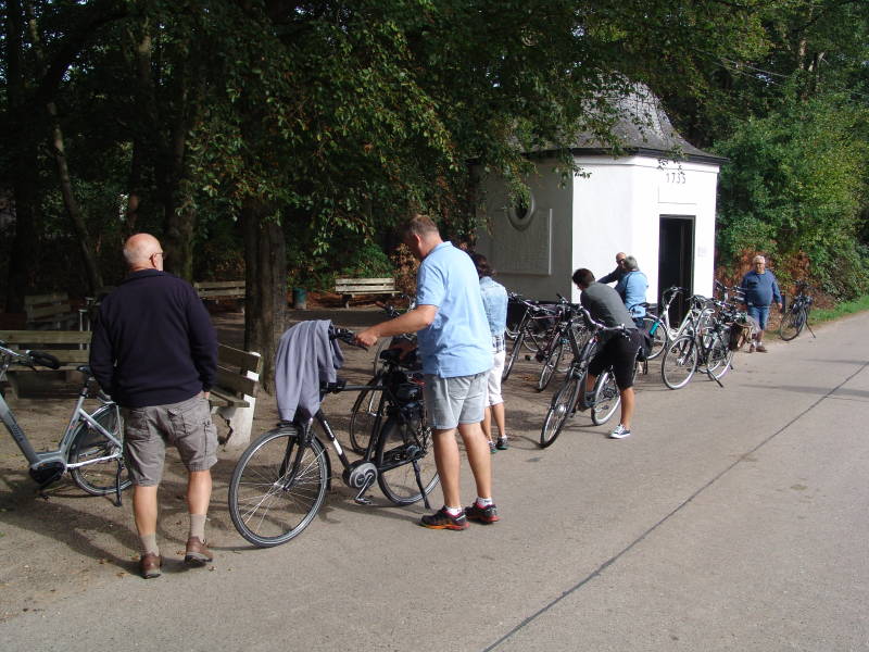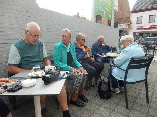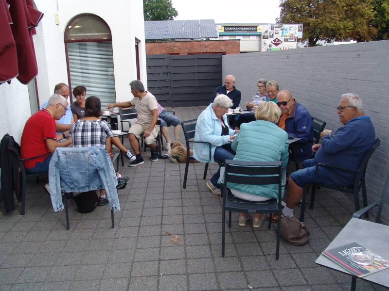 Na de stop nog een aantal kilometers en we zijn tegen een uur of drie na de middag weer op de camping bijna 40 km een mooie route. We pakken onze stoeltjes en zitten daarna nog gezellig met zijn allen bij elkaar om nog gezellig bij de kletsen. Tegen 17.30 uur stappen we op de fiets om in Esbeek te gaan dineren en het was goed eten en goed verzorgd. Tegen 20.30 uur waren we weer op de camping. We zetten onze fietsen achterop de