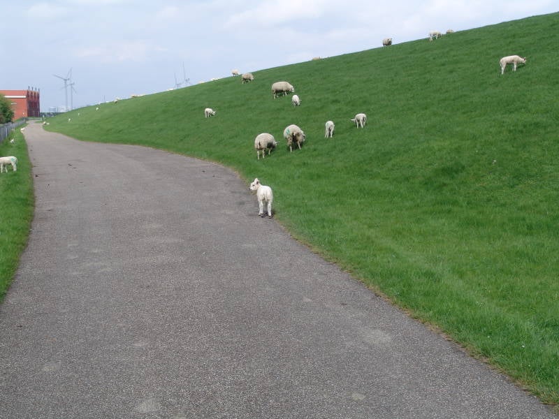 Zaterdag 28 april vertrekken we tegen een uur of 11 voor een fietsroute langs de Eems en de Dollard, veel schapen onderweg langs de dijk en natuurgebied.