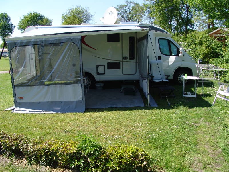 Woensdag 9 mei komen onze dochter, schoonzoon en kleinkinderen Sem en Finn ook op de camping in Heino. Met elkaar de voortent plaatsen voor de caravan en andere dit en datjes. Donderdag 10 mei blijven we met zijn allen lekker op de camping en de kleinkinderen vermaken zich best.