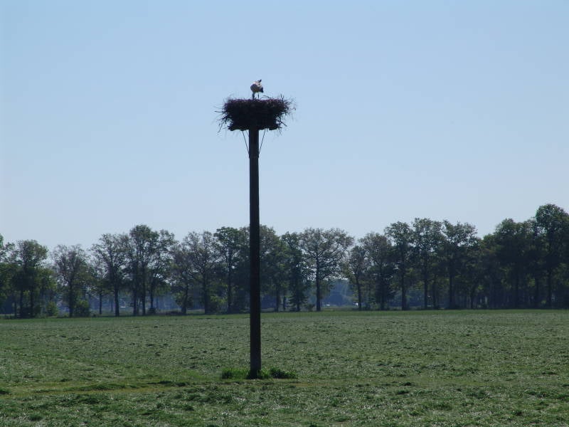 Dinsdag 8 mei na de koffie maken we een mooie fiets tocht richting lemelerveld langs boeren bedrijven waar een ooievaars met jong midden in een weiland staat en leuk om te zien.