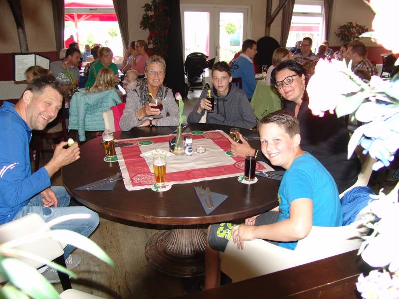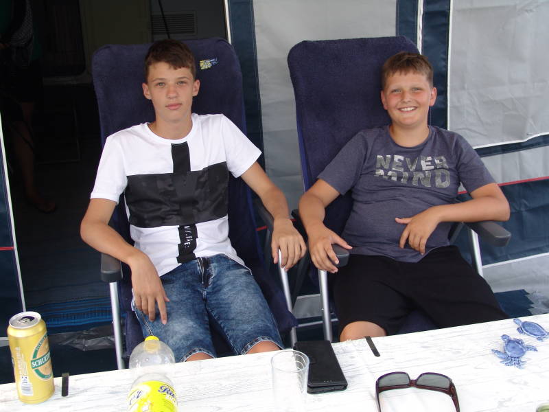 Zaterdag morgen 18 Augustus zijn we om 7 uur op gestaan want we wilden niet al te laat vertrekken van uit Börgerende. Na het ontbijt alles inpakken en tegen 9 uur verlaten we de camping en rijden naar huis over een afstand van 470 km. Na enkele langzaam rijdende files en diverse stops en ons laatste etentje bij de Poort van Groningen waren we even na 17.00 uur weer thuis. Iedereen heeft genoten van deze prachtige vakantie en daar doen we het tenslotte voor. Onze kleinkinderen willen wel weer. Gezellige kereltjes.