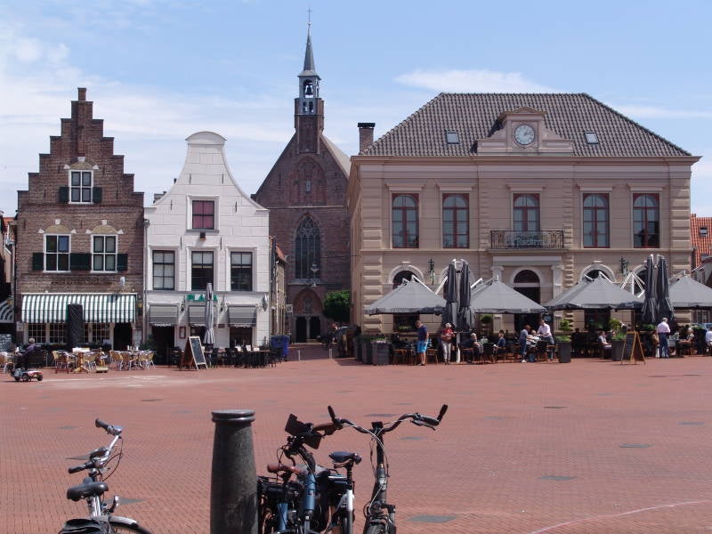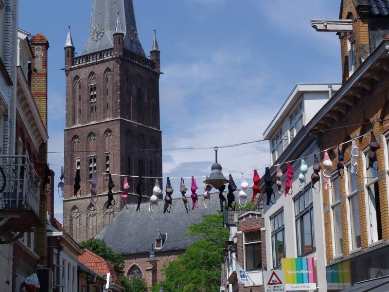 naar Steenwijk waar we een kop koffie drinken en gebruik maken van een heerlijke tosti. Steenwijk heeft een mooie centrum rondom het plein met oude gebouwen.BH hangen traditie in Steenwijk.