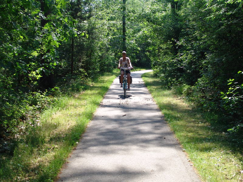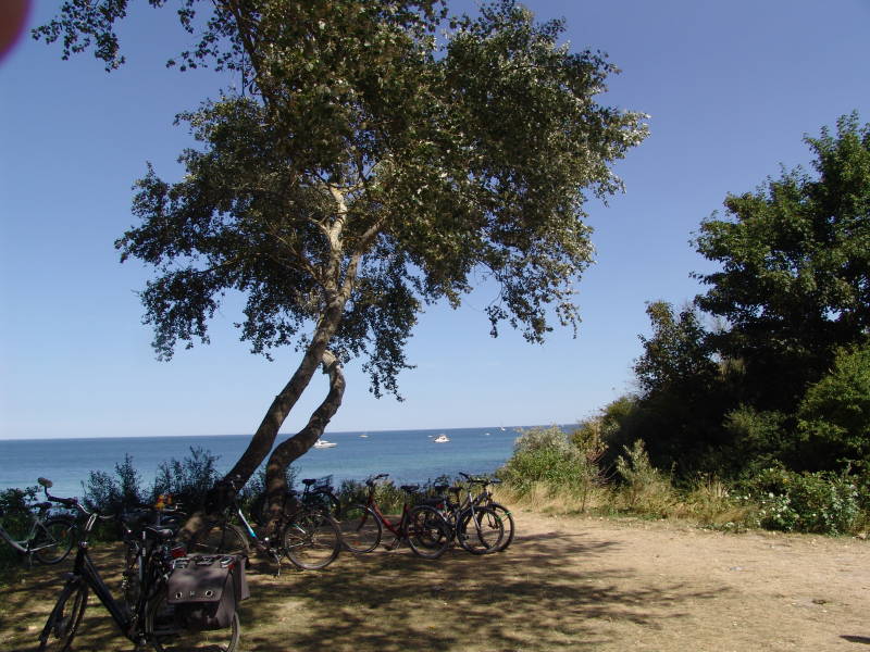 Tegen half 1 eten we hier een broodje met een kop koffie er bij en na het eten wandelen we hier door het mooie gezellige stadje, doen wat aankopen en stappen tegen een uur of drie weer op de fiets richting de camping, dit keer langs de kust en door het bos. Tegen 16.00 weer op een camping. Totale fiets afstand 41 km.