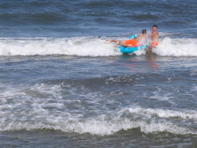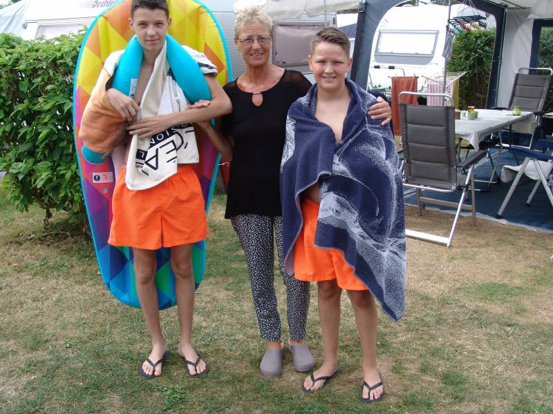 Verder genieten we deze dag van het mooie weer, Zondag 5 Augustes blijven we op de camping en maken een kleine wandeling naar en over het strand. Enorm druk op het strand en de kleinkinderen hadden volop plezier.
