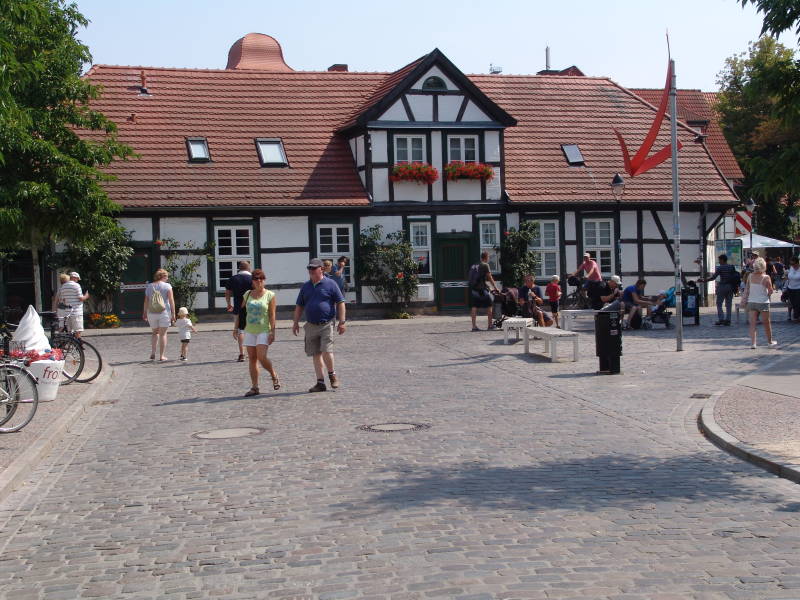 We eten hier een Thuringer Braadworst en wandelen hier ook door de drukke kleine straatjes en langs de haven door het gezellige stadje waar we ook nog even wat aankopen hebben gedaan. Tegen half 4 weer terug op de camping, afstand heen en terug 28 km.