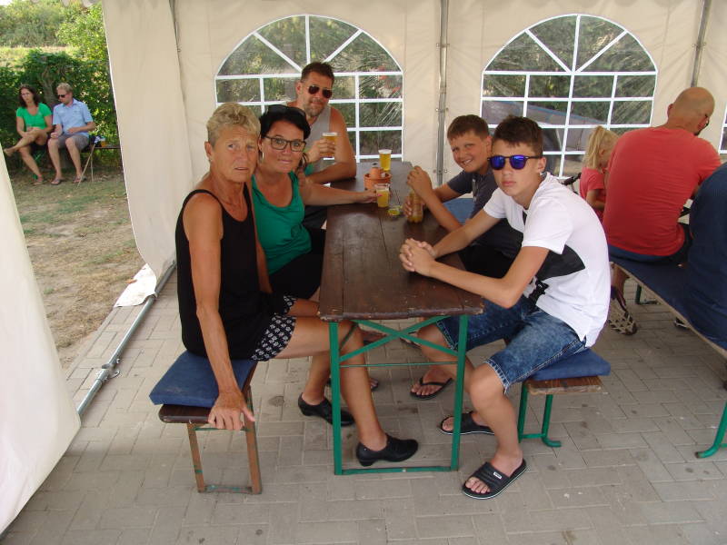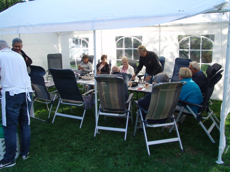 Iedereen genoot van deze heerlijke b.q.q. en we hadden geluk want het was prachtig mooi weer. Drank werd met mate gedronken.