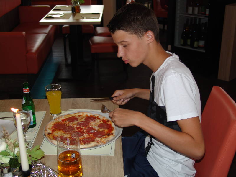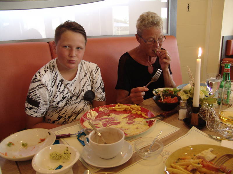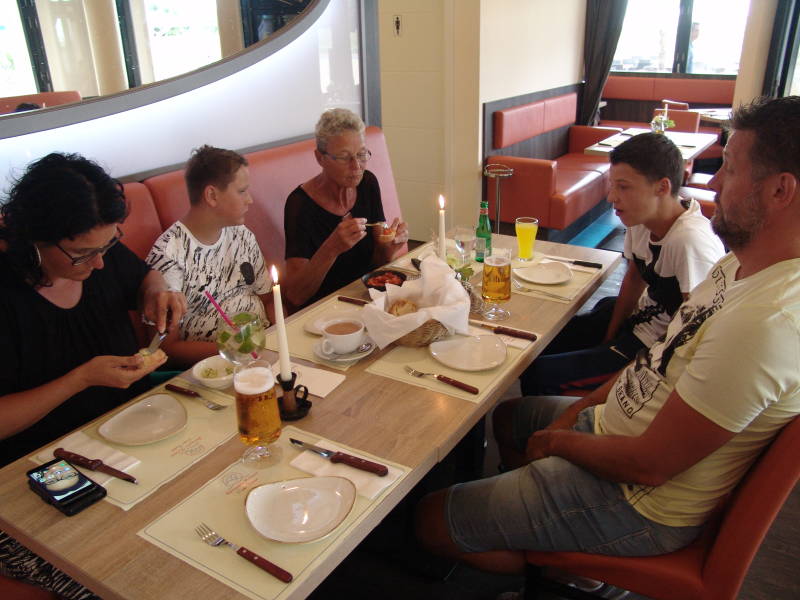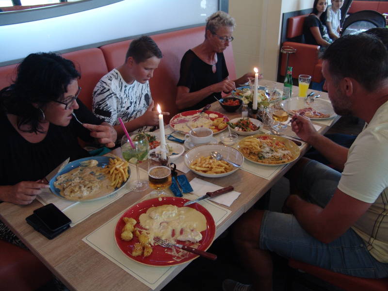Donderdag avond gaan we gezellig uit eten op de camping en het was heerlijk de kleinkinderen vinden alles heerlijk.