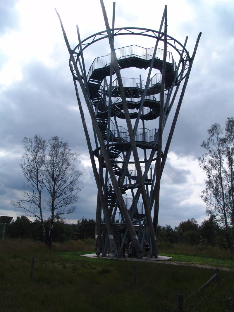 Na de lunch vervolgen we weer onze route door het bos en zien een aantal mensen de toren in klimmen, om hier in te mogen klimmen betaal je € 1,00 en boven in de heb je wel een prachtig mooi uitzicht.