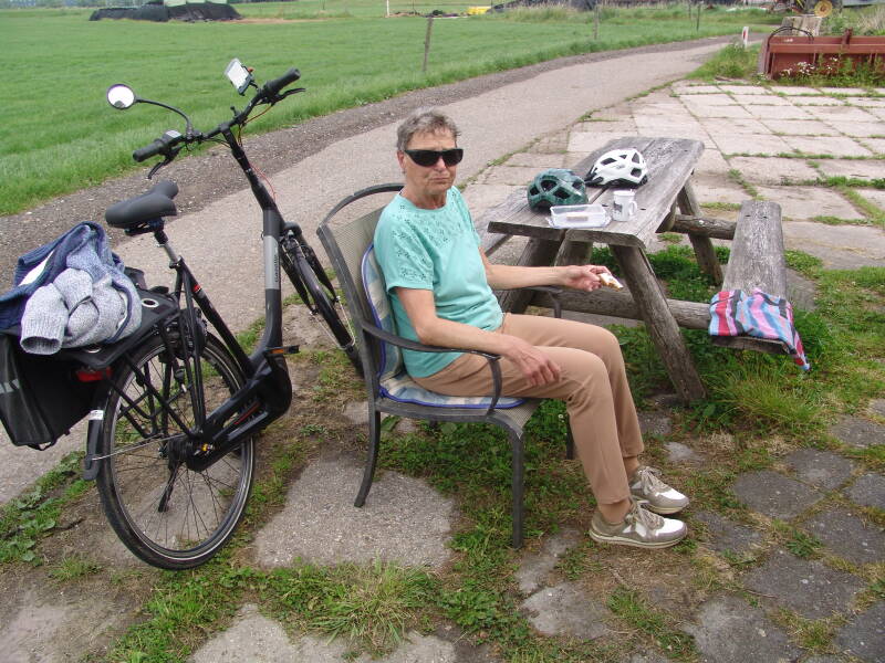 Zaterdag 30 mei gaan we wederom na het ontbijt weer een fietstocht maken dit keer de Kampereiland route, dit is een hele lange route maar wij maken een ingekorte route door landerijen met hier en daar een boerderij en geen dorp te bekennen. We komen onderweg nog een boerderij museum tegen die we wel even wilden bekijken maar helaas gesloten dan maar verder fietsen en verder onderweg zien we een rustpunt en hier drinken we een kop koffie met koek er bij en dat voor € 3,00.