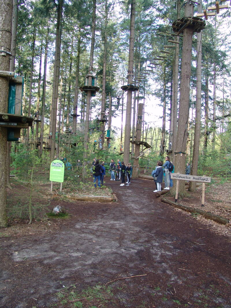 Donderdag 13 mei na het ontbijt en de koffie nemen we fiets en maken een fietstocht en gaan vanaf de camperplaats het bos in langs een klim en klauterpark waar het al heel druk was nemen een kijkje