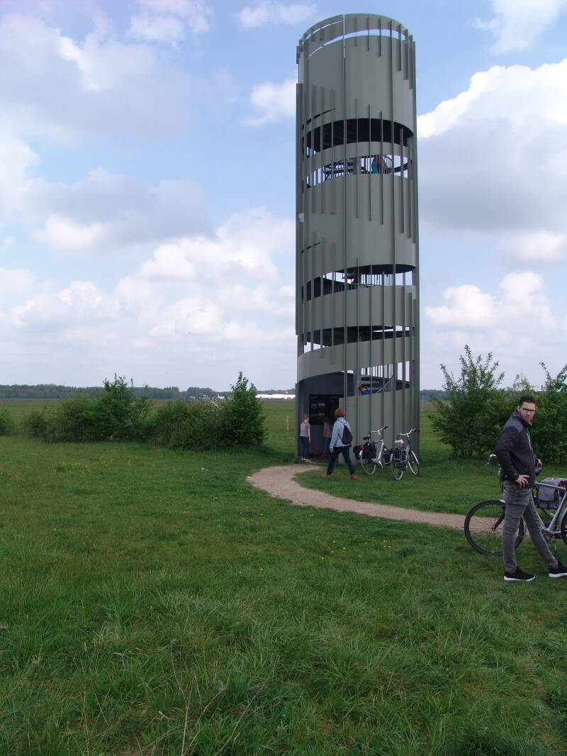 Fietsen weer door langs de uitkijktoren van het vooroorlogse vliegveld. Tegen 15.00 waren we weer bij de camper, mooie