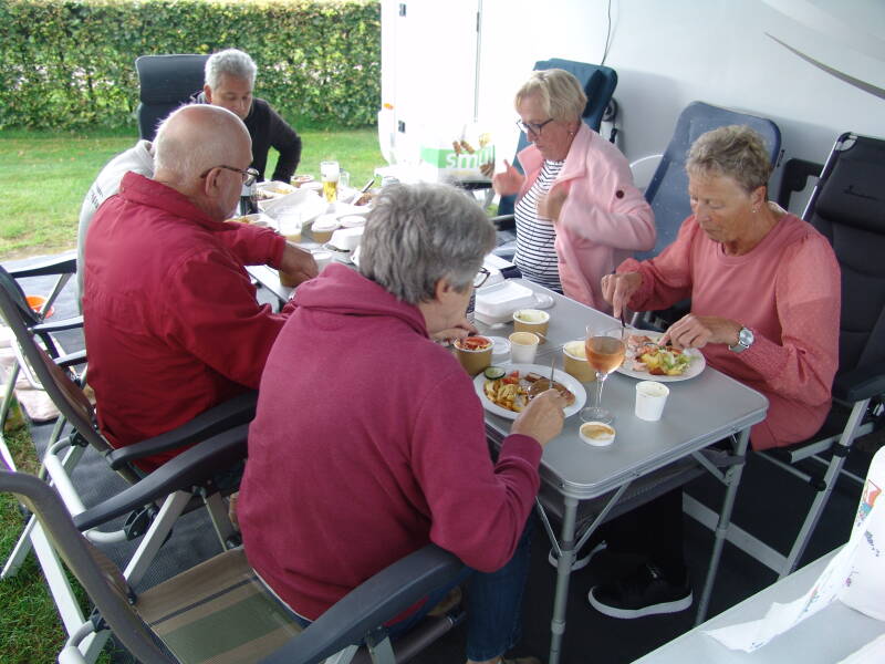 Donderdag 26 augustus gaan Marie en Rita samen naar het vlecht museum in Noordwolde en ik heb een rustdag, ook wel lekker. Bij terug komst van de dames vertelden ze dat ze zich prima hadden vermaakt en dat het zeer de moeite waard was. Vrijdag 27 augustus arriveren s'middags Jaenne en Ad en een paar uur later Janja en Rex. Onder het genot van een drankje en hapje praten we bij van de laatste twee jaar in verband met de corona tijd. Tegen 17.30 uur gaan Rita en Joop het bestelde eten halen uit Diever en het smaakte heerlijk. Aangezien dat het toch wel wat frisser wordt gaan de meesten hun eigen weg en gaan ze naar hun eigen camper of caravan.