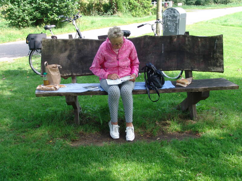 Woensdag 25 augustus na de koffie maken we met zijn drieën een fietsroute richting Diever, Westereinde, Stroovledder. Onderweg nemen we even pauze en vervolgen weer onze route