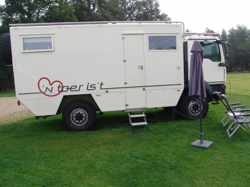 Op de hier onder afgebeelde foto een omgebouwde camper, deze stond ook op de camperplaats. Leuk omgebouwd.